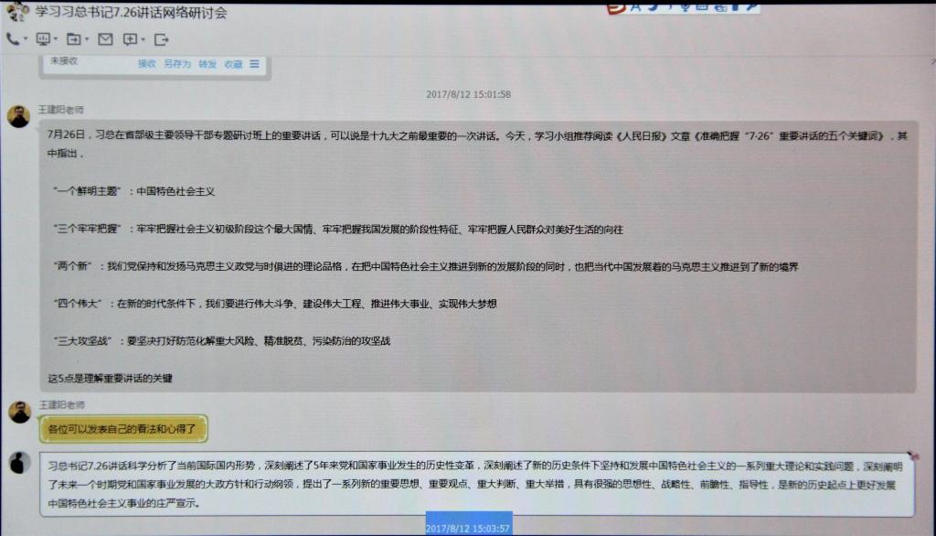 8月12日,大乐透 本科党支部召开网络会议集体学习7月26日习近平总书记在省部级主要领导干部专题研讨班上的重要讲话,会议由本科生党支部书记王建阳主持。