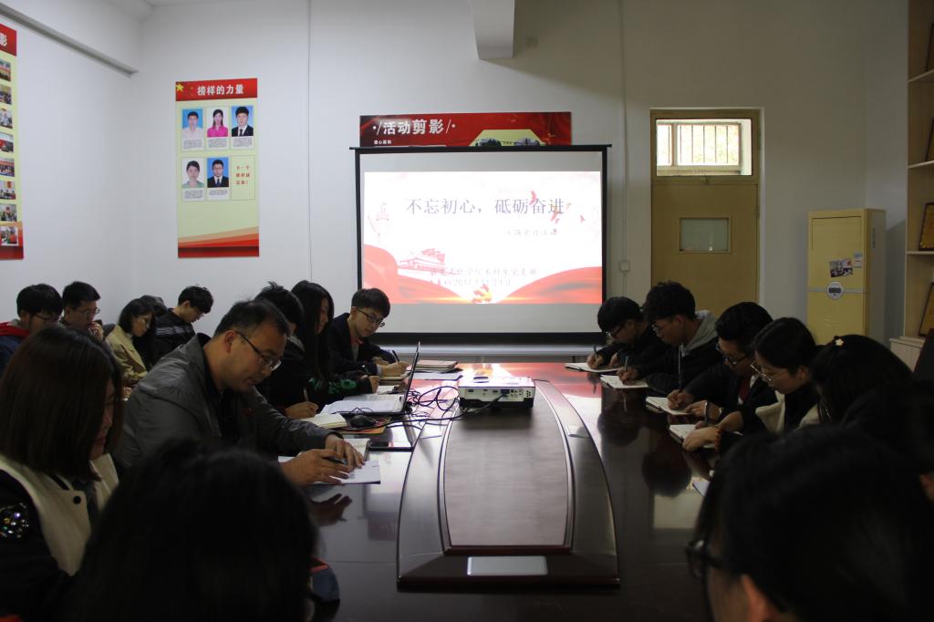 11月1日,大乐透 本科生党支部举办“不忘初心,砥砺奋进”学习十九大精神主题党日活动。活动由本科生党支部书记王建阳主持。
