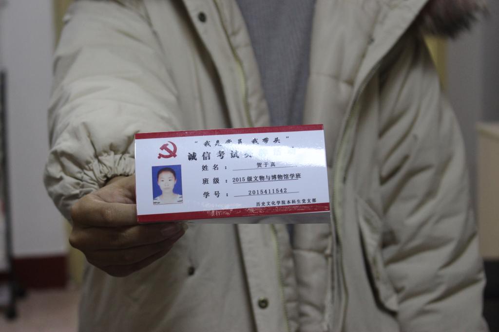 本科生党支部“我是党员,我带头”诚信考试亮牌活动从2017年开始启动,号召全体党员同志在考试过程中,出示诚信考试亮牌活动卡,让党员同志大胆亮出身份,诚信考试,为同学们做好榜样,发挥党员的模范先锋作用。