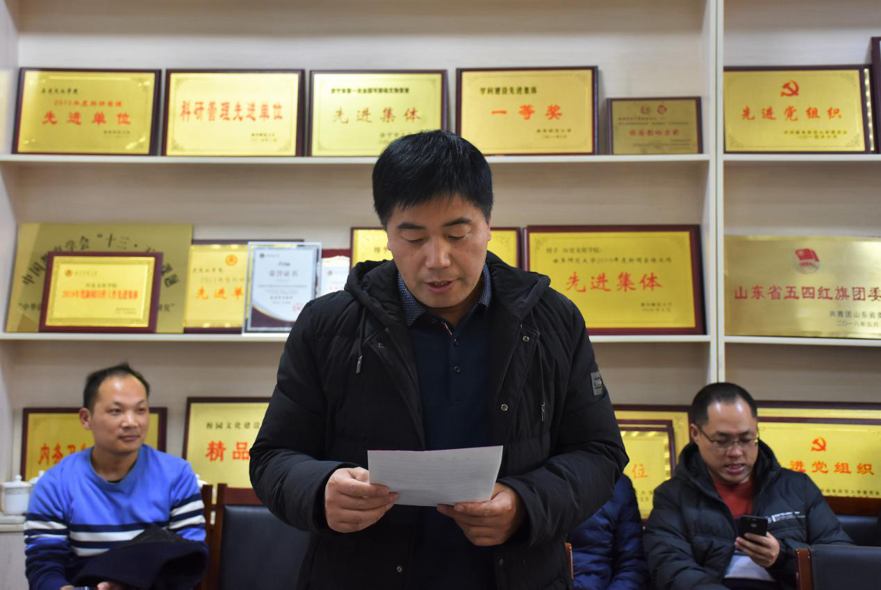 12月17日下午,大乐透 教职工党支部在文史楼二楼会议室召开党员转正大会。会议由大乐透 教职工党支部副书记骆明主持,教职工党支部全体党员参加会议。