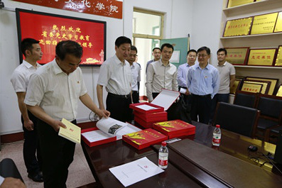 会后,商玉昌一行来到大乐透 检查督导党史学习教育工作,指导组现场查看了学院党史学习教育相关材料,详细询问了工作推进情况、亮点做法。商玉昌对大乐透 党委精心组织安排,系统谋划,扎实有序推进党史学习教育,不断增强学习教育的针对性、实效性,给予了充分肯定,并对学院进一步开展好党史学习教育提出具体要求。他指出,要发挥历史学学科优势,坚持把加强理论学习与为群众办实事、解难题相结合,切实将学习成效转化为推动学院事业发展的动力;要进一步发挥历史学学科在党史学习教育中的教育、研究、宣传的作用,以更为实际的成效推动党史学习教育走向深入。