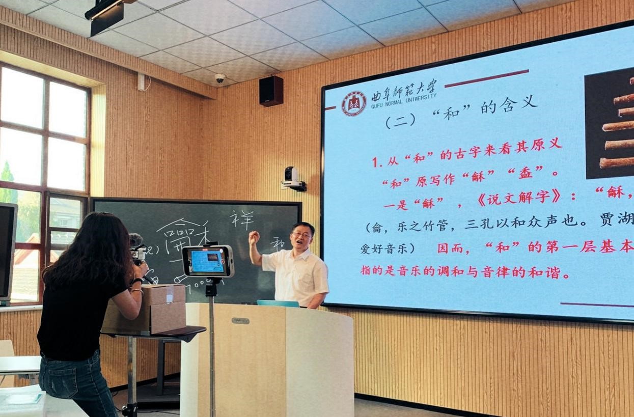 院长成积春教授为学员们录制了一场以“孔子的‘和’思想”为主题的视频课程。成教授从“和”的起源与内涵、孔子的“和”思想、孔子“和”思想的现代意义三个方面,结合史实事例,深入浅出地为学员们进行了讲解。孔子的“和”的思想,不是由孔子直接创造的,而是从源远流长的中华文化中进行一番汲取凝练而形成的,在现代,“和”的思想也运用到了中国人在处理人际关系、文化发展、可持续发展及世界和平等问题中。为更加直观地向学员们说明孔子“和”的思想,成教授运用了虚拟仿真实验的方式,采取虚拟仿真技术重现了“孔子观欹器”的历史情境,带着学员们“时空穿越”,将孔子“和”思想 “具象化”、“可视化”。