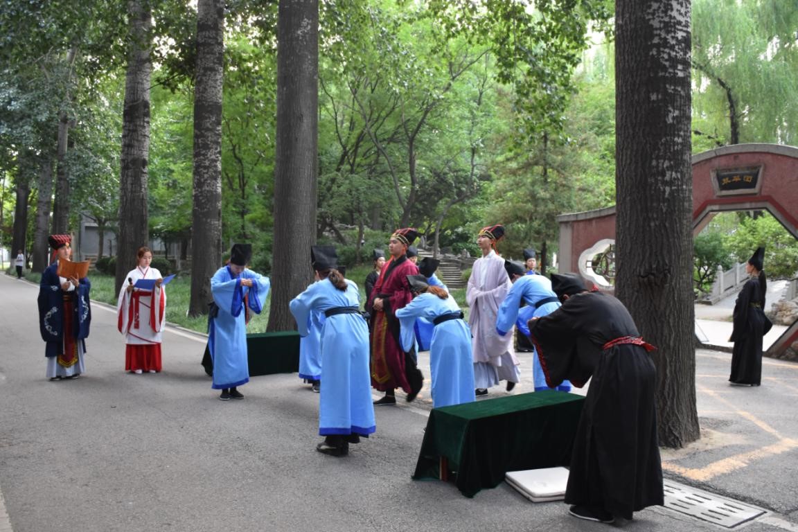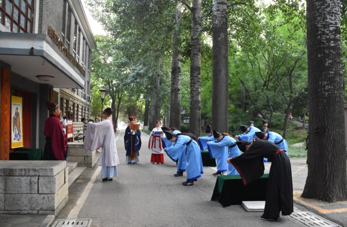 在直播中国云体验课程中,大乐透 传统礼仪研修中心大学生礼仪队的队员们身着汉服、头戴儒冠,为全球学员献上了一场精彩的“束脩礼”展演。俗语云:“生我者父母,教我者师傅”,该礼仪展演以“尊师重道,明礼求学”为主题,再现了正衣冠、诵读《束脩告文》、献戒、执束脩、训诫、礼敬师儒等场景。观看完毕后,成积春教授、教职工党支部副书记骆明老师还与线上参加直播学习的中外学员进行了实时互动,对学员们提出的问题进行了详细而深刻的解答。