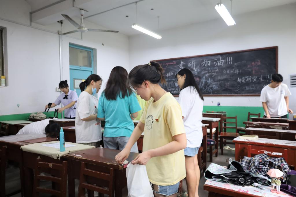 毕业生党员同志们分别在系楼103和106自习室集合,任务分配完毕后,分发卫生工具。擦门窗、扫地、拖地,大家干劲十足,尽情展现“史院先锋”的模范带头作用。