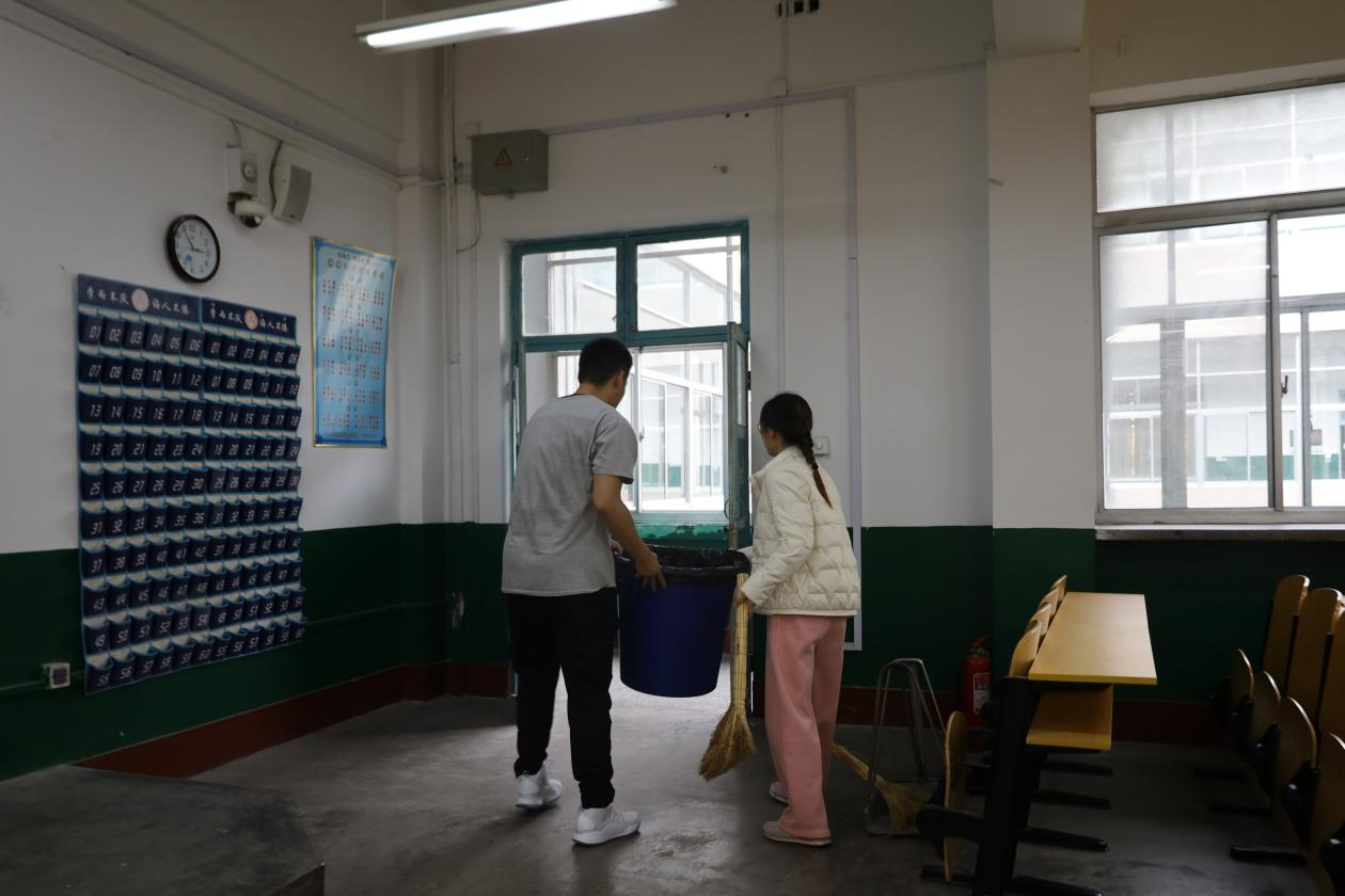 党员同志在文史楼411集合,任务分配完毕之后,大家拿起卫生工具,对教室进行打扫,干劲十足。