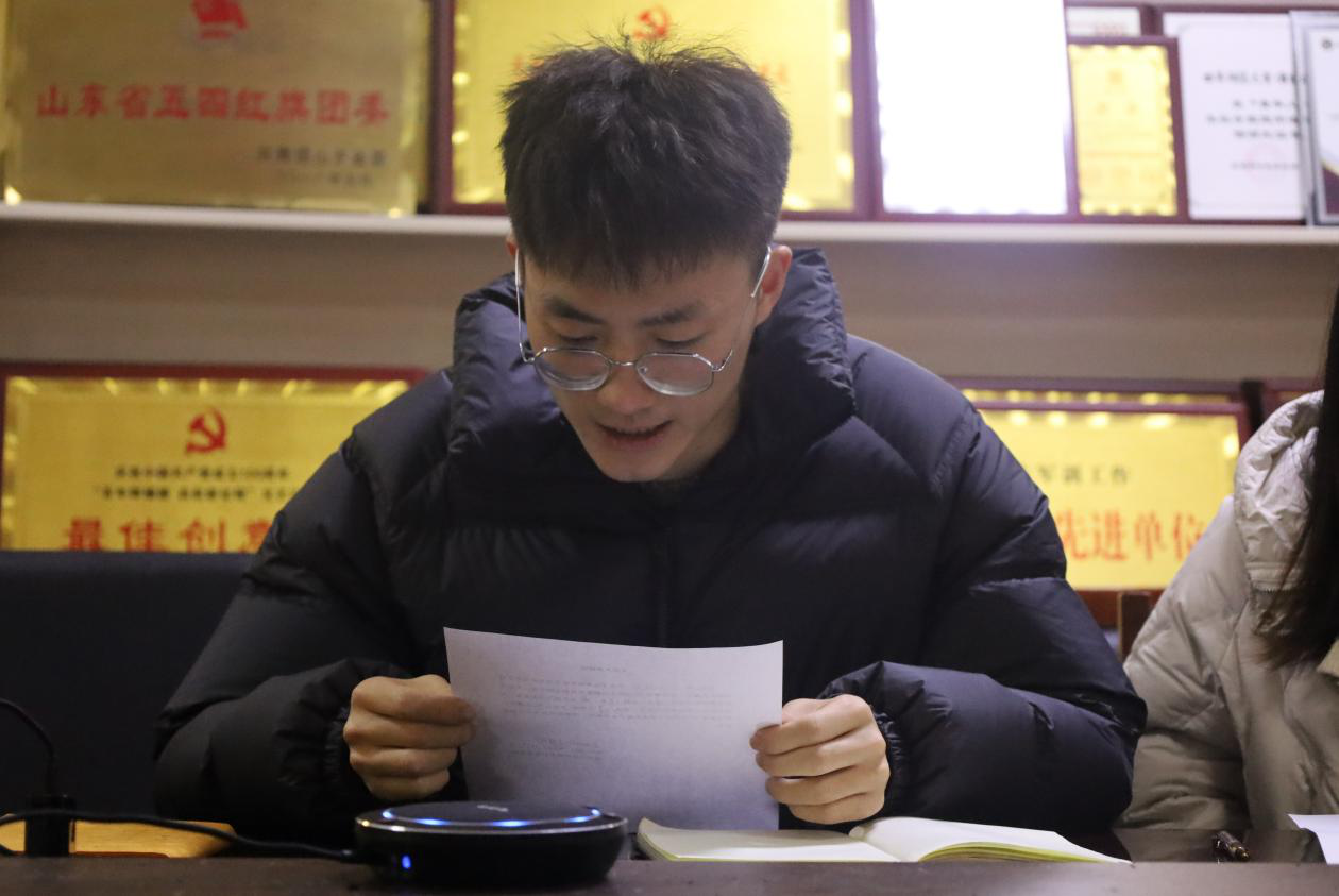 周津羽、李雨繁等22位同志依次宣读《入党志愿书》,汇报自己在发展对象培养期内的表现,找出差距,表明决心,说明有关问题。同时,发展对象期间的培养联系人分别介绍张周津羽、李雨繁等22位同志在发展对象期间的表现,表明本人是否同意介绍其加入中国共产党。