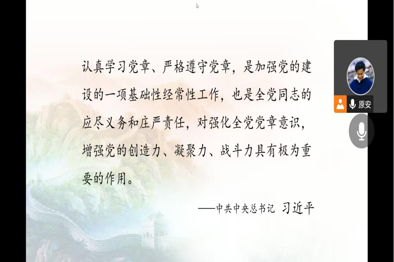 原安同志领学了党章和一二·九抗日救亡运动的具体内容,本科生党支部的党员同志们结合自身学习、生活实际交流了心得体会和思想感悟,坚定了自身理想信念,在思想上和精神上接受了一次深刻的洗礼。