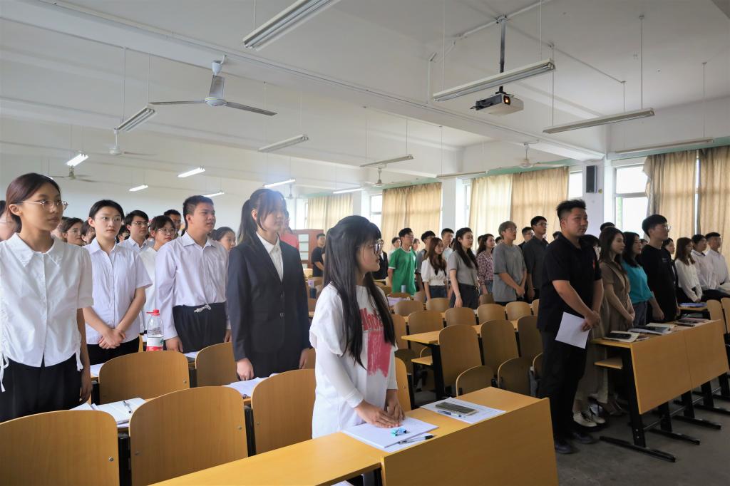 随后,董经同志代表本科生党支部委员会宣读考察意见,24位发展对象同志对党员提出的意见表明态度。刘贤贤同志宣布党支部大会决议,经过无记名投票,一致同意张凯博、徐浩洋等24名发展对象转为中共预备党员。