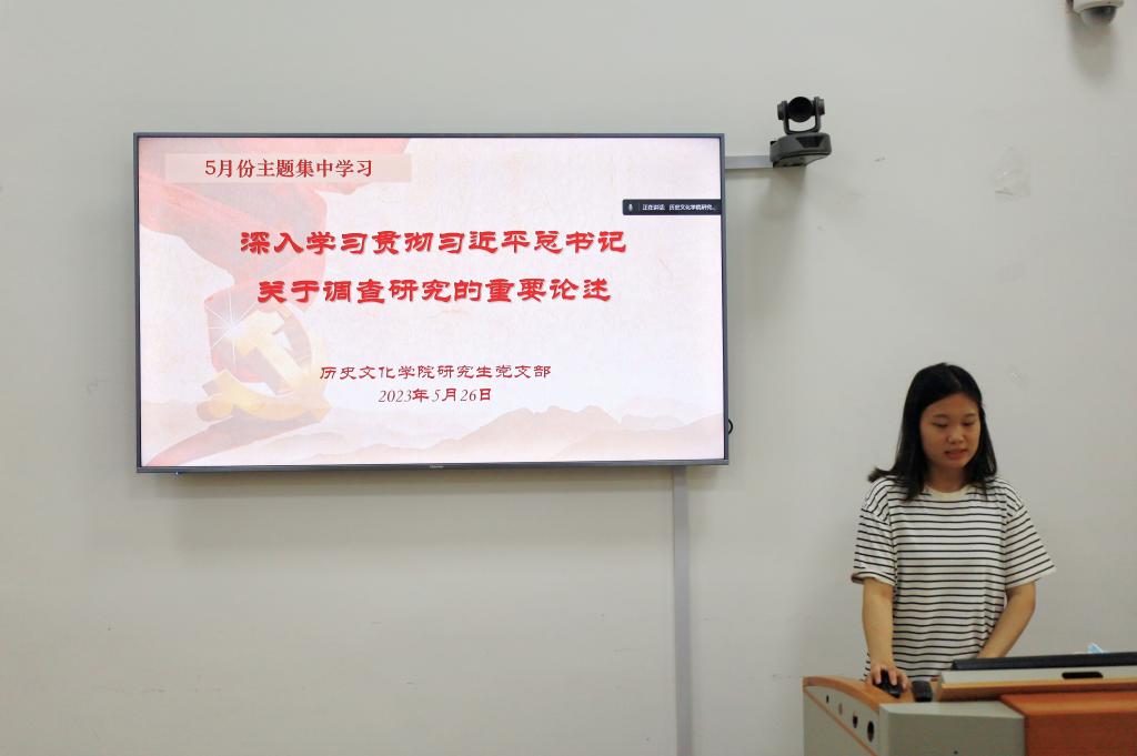 本次集中学习研讨的主题为:深入学习贯彻习近平总书记关于调查研究的重要论述,支部纪检委员王晗同志分享了本次集中学习的相关内容,回顾了习近平总书记提出关于调查研究的重要论述的过程,并选取了习近平总书记关于调查研究的部分重要讲话内容,带领支部党员同志原原本本学讲话,深刻体悟其中的主旨内涵,了解调查研究的极端重要性。