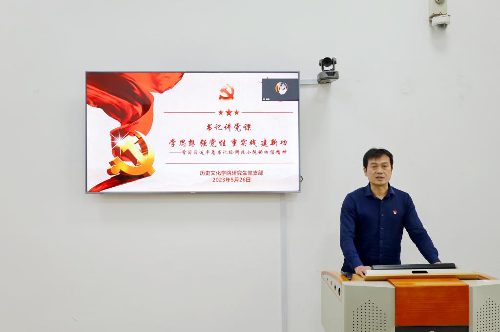 研究生党支部书记孙锋同志为支部成员作了题为《学思想 强党性 重实践 建新功——学习习近平总书记给科技小院的回信精神》的专题党课。近日,习近平总书记给中国农业大学科技小院的同学们回信,体现了总书记对新时代青年的殷切期望,饱含着总书记对广大青年的深切关爱和殷殷嘱托,是新时代青年成长成才的行动指南。孙锋同志总结了研究生支部优秀党员近期所取得的成果,鼓励同志们向身边的优秀党员学习,发挥朋辈带动作用。鼓励青年党员要坚持党的领导,学习先进思想,增强党性修为,把学懂弄通做实习近平新时代中国特色社会主义思想作为首要政治任务,在深化学习中坚定理想信念、提升思想境界。还要“自找苦吃”,努力在实践中立新功,以“越是艰险越向前”的英雄气概,以“敢教日月换新天”的昂扬斗志,积极主动作为,坚定勇毅前行,在推动学院高质量发展中发挥才干、再建新功!