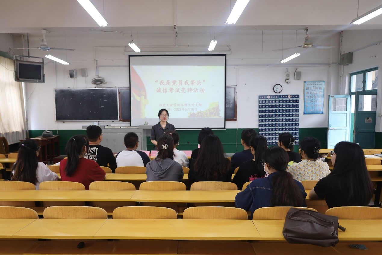 2023年6月18日下午,大乐透 本科生党支部于文史楼411召开六月份主题党日活动暨“我是党员我带头”诚信考试亮牌活动,本科生党支部全体在校党员参加。