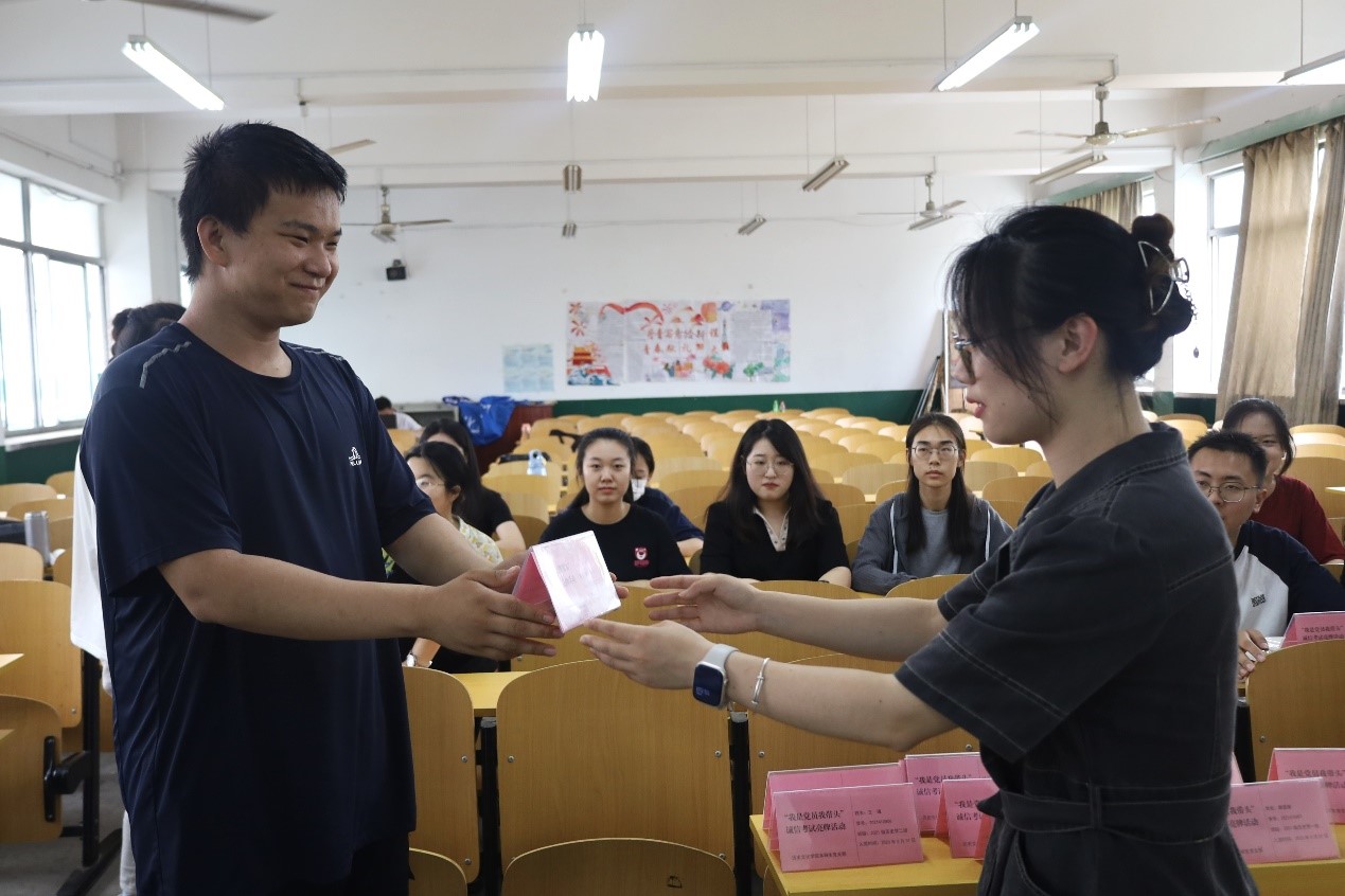 本次活动由董经同志主持。会议伊始,兰鸽同志发表诚信考试讲话,呼吁各位党员要在考试中树立先锋模范作用,遵守考试纪律,严守考风考纪;随后向党员们颁发诚信考试姓名牌。活动期间,同志们严肃认真,详细地阅读了诚信考试姓名牌;与会党员们纷纷表示要将道德原则与道德规范内化于心、外化于行,求真务实,诚信参试。