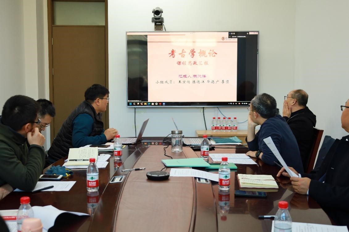 《孔子与论语》和《孔子“和”思想》课程负责人成积春、《中国通史》课程负责人姜修宪、《世界通史》课程负责人李鸿美、《考古学概论》课程负责人陈德洋先后汇报了所承担项目课程思政建设的目标定位、工作思路、主要成效,展示了教学大纲、教学设计、教学案例等支撑材料。专家组从建设理念、课程特色、教学技巧等方面对每一个建设项目进行了点评,建议要以“自觉弘扬中华优秀传统文化、革命文化、社会主义先进文化”为基础,从讲清楚中华文明起源、中华文明特性、中华文明贡献、中华文明交流等层面进一步完善学院课程思政建设体系。