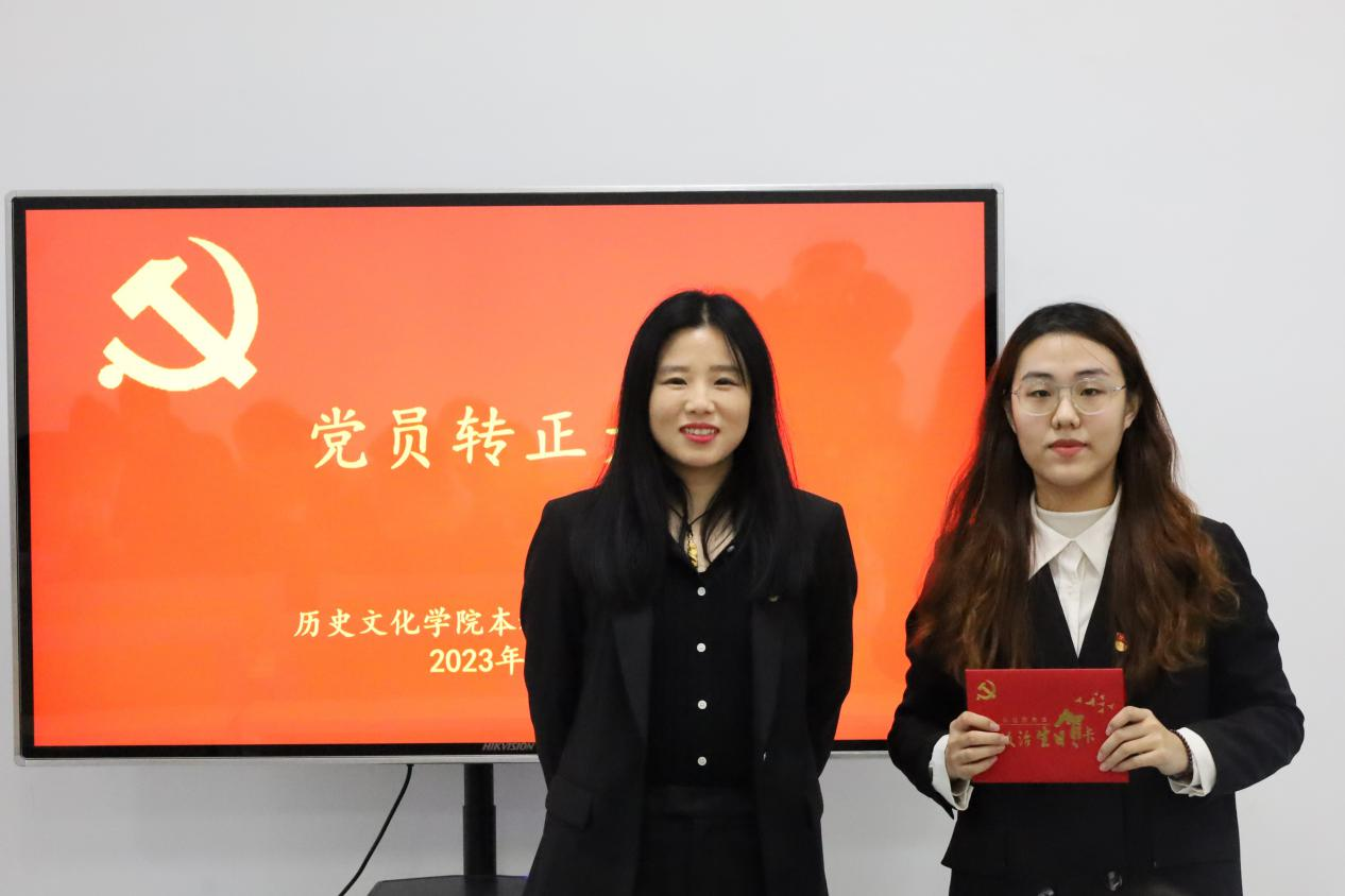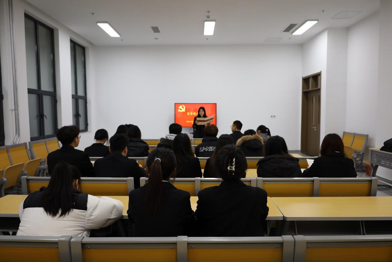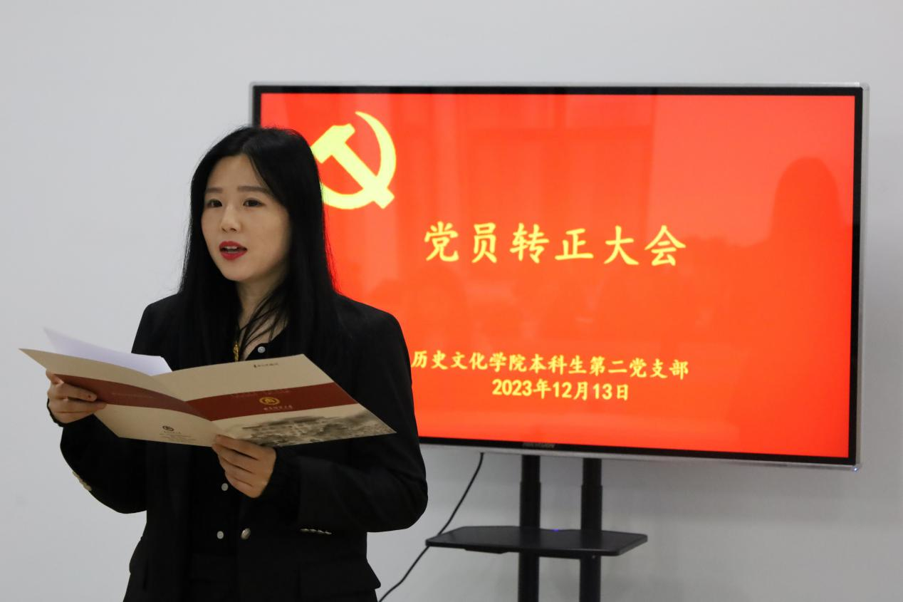 窦鲁豫、胡佳等4位同志依次宣读《转正申请书》,从思想、学习、生活、工作等方面,向党组织报告预备期间个人情况,表明入党动机和志愿加入中国共产党的决心。紧接着,各位考察联系人分别介绍窦鲁豫、胡佳等4位同志在预备期间的表现,对预备党员予以肯定,同意其如期转为正式党员。