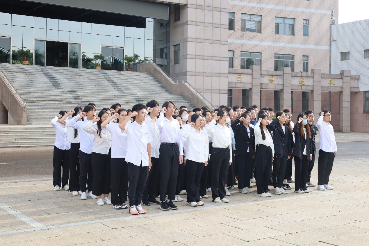 伴随着慷慨激昂的国歌声,大家满怀深情向国旗行注目礼并合唱国歌,以求表达对祖国的深情热爱、对党的忠诚与敬意。