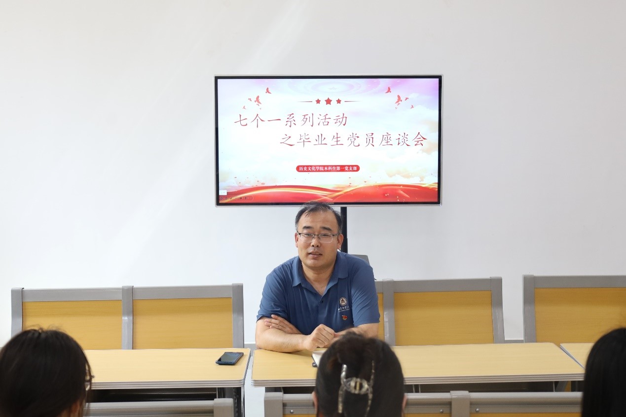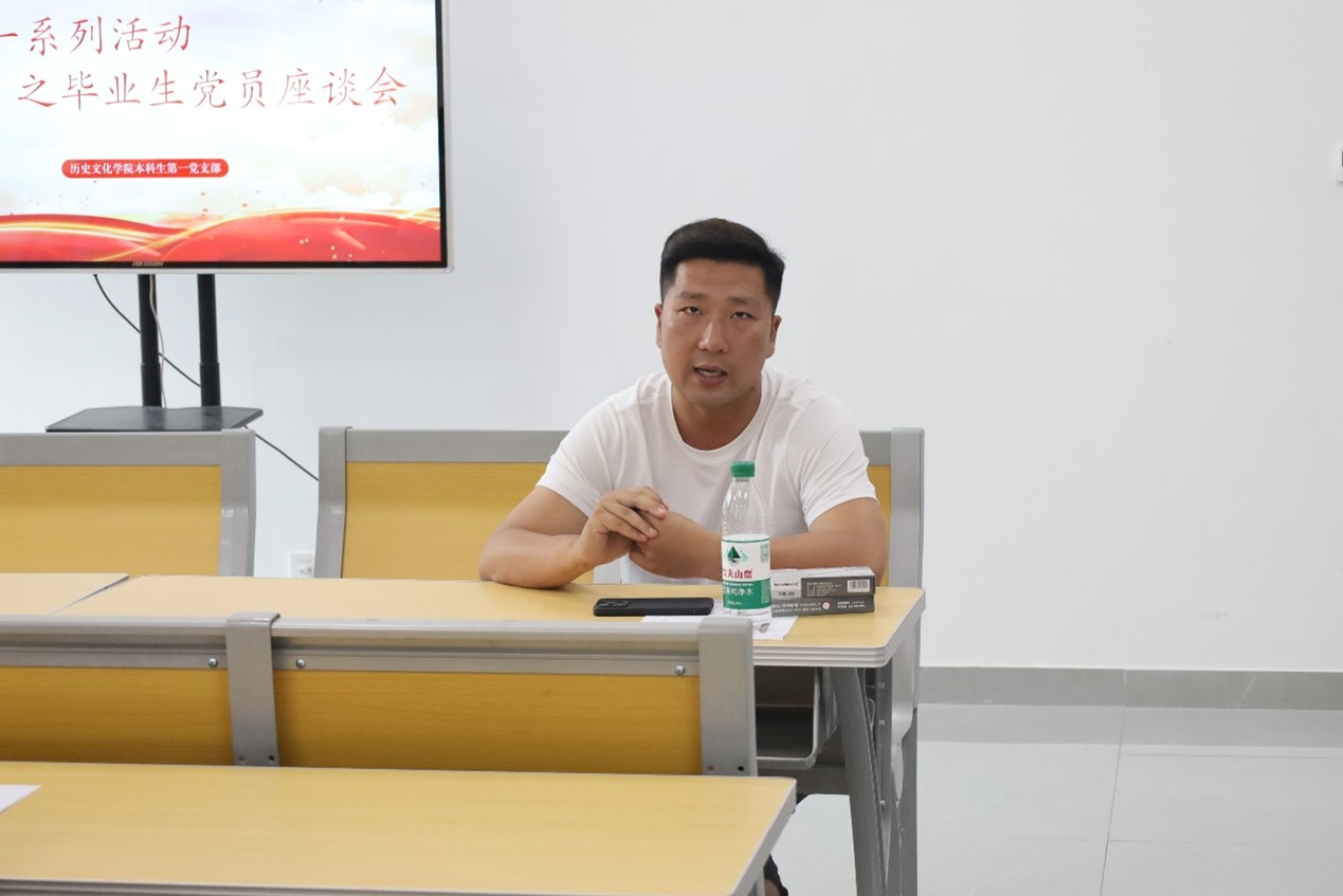 随后,王建阳同志对各位毕业生党员送上最真挚的祝福,分别对各位同志表达了祝贺与期望。紧接着,本科生第三党支部书记董经同志深切关心了各位毕业班同学的生活、学习情况,并强调各位毕业生党员要发挥好先锋模范作用,站好毕业前的最后一班岗。毕业生党员们也纷纷表达对学院、老师、同学们的感恩,表示在之后的工作学习生活中,将始终坚持“优秀是一种习惯”的史院精神,发扬史院先锋的模范带头作用。