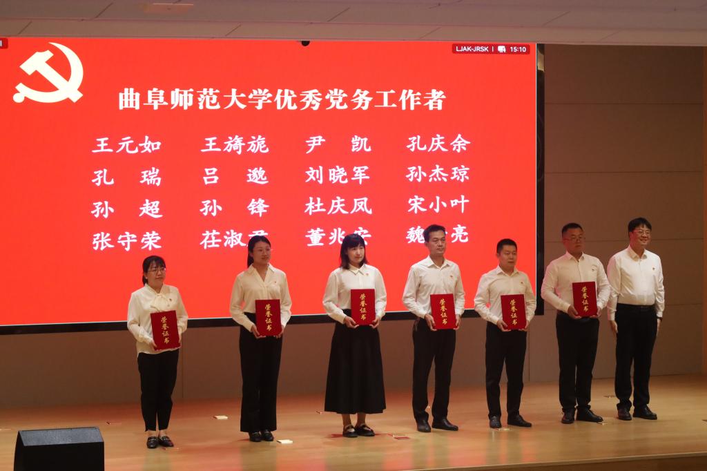 在学校表彰的先进基层党组织、优秀共产党员、优秀党务工作者中,大乐透 研究生第一党支部荣获先进基层党组织称号,中国史教师党支部书记姜修宪同志荣获优秀共产党员称号,研究生第一党支部书记孙锋同志荣获优秀党务工作者称号。本次大会宣读了教工党员育人标兵、基层党务学用标兵、学生党员奋进标兵名单,教工党支部书记樊友猛同志被评为教工党员育人标兵,本科生第二党支部书记刘贤贤被评为基层党务学用标兵,原安同志、苏辰阳同志、杨素花同志被评为学生党员奋进标兵。
