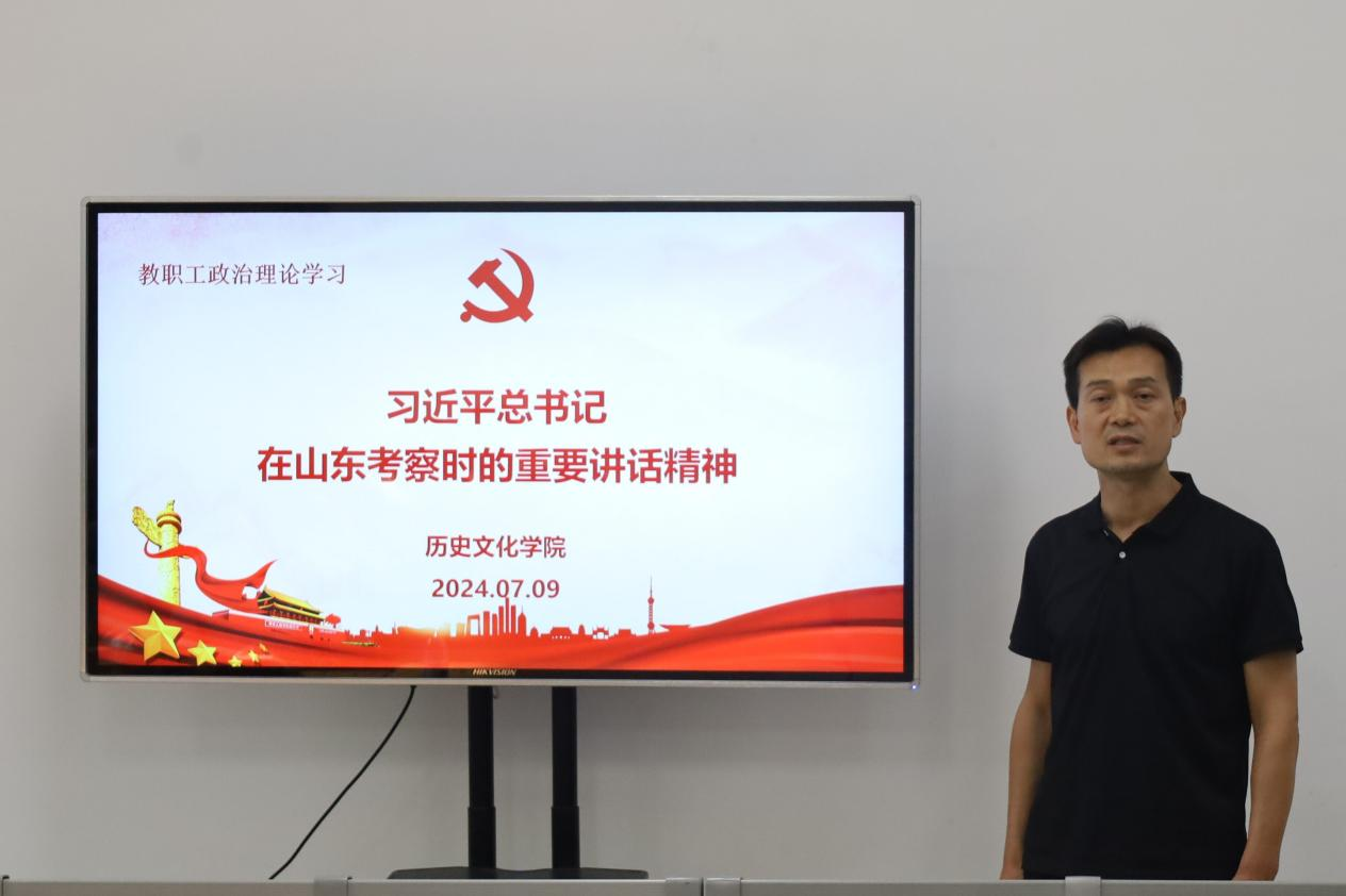 会议首先进行了政治理论学习,学院党委宣传委员孙锋同志领学了习近平总书记在山东考察时的重要讲话精神和习近平总书记在《求是》杂志2024年第10期发表的文章《全面深化改革开放,为中国式现代化持续注入强劲动力》。