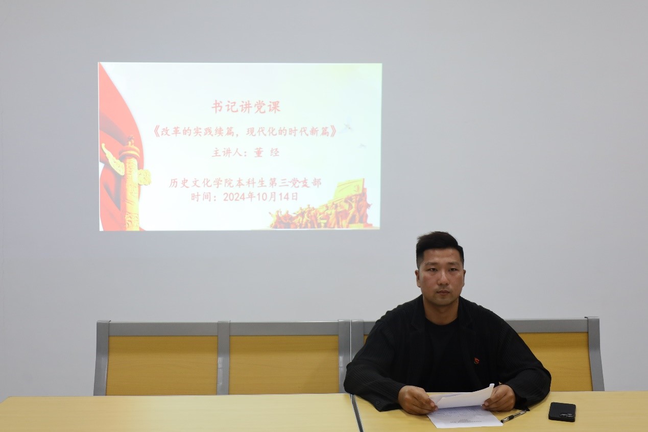 会上,董经同志以“改革的实践续篇,现代化的时代新篇”为主题,围绕习近平总书记在党的二十届三中全会上的重要讲话和全会《决定》,从“把握历史主动”“锚定关键领域”“遵循改革规律”三个方面,全面系统讲解了党的十八大以来,以改革开放推动党和国家各项事业取得的历史性成就、发生的历史性变革,全面分析了全会的主题和重大意义。董经同志强调全体党员要把思想和行动统一到全会精神上来,把学习贯彻全会精神同学习领会习近平总书记关于全面深化改革的一系列新思想、新观点、新论断结合和贯通起来,自觉入脑入心,做好新时代的“史院先锋”。