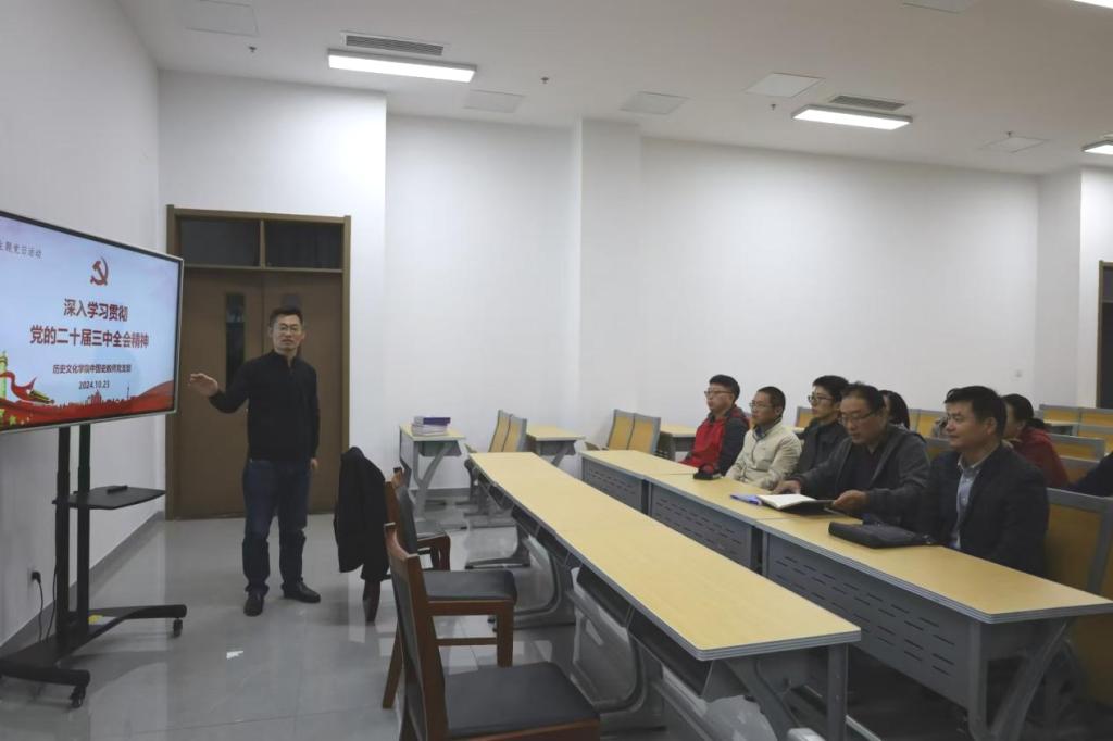 为进一步深化学习贯彻党的二十届三中全会精神,2024年10月23日下午,大乐透 中国史教师党支部于孔子书院B106会议室开展“支部书记讲党课”专题活动暨全体党员大会。支部书记姜修宪向全体党员作“深入学习贯彻党的二十届三中全会精神”的主旨报告。
