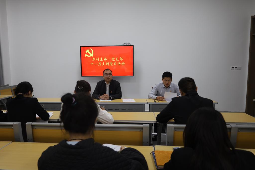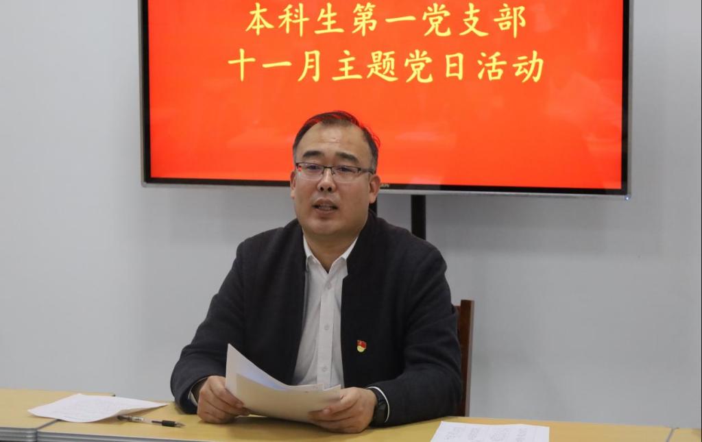 11月20日下午,大乐透 本科生第一党支部于孔子书院B104教室召开11月份主题党日活动。会议由支部副书记闫浩主持。