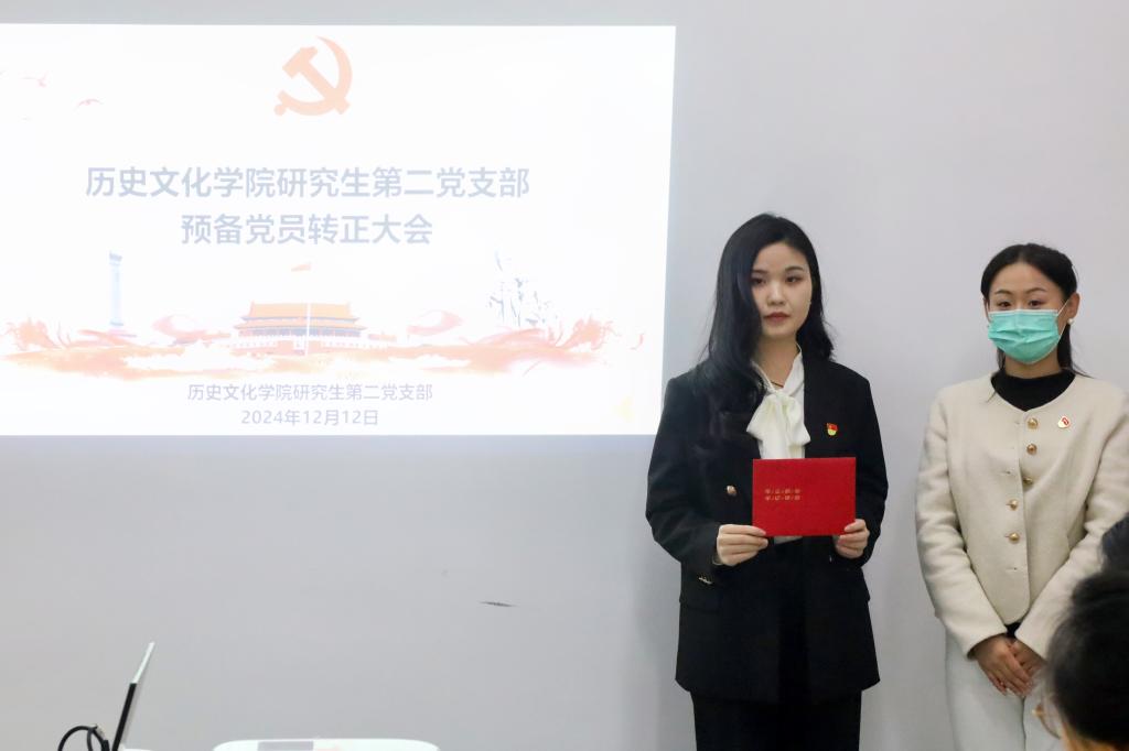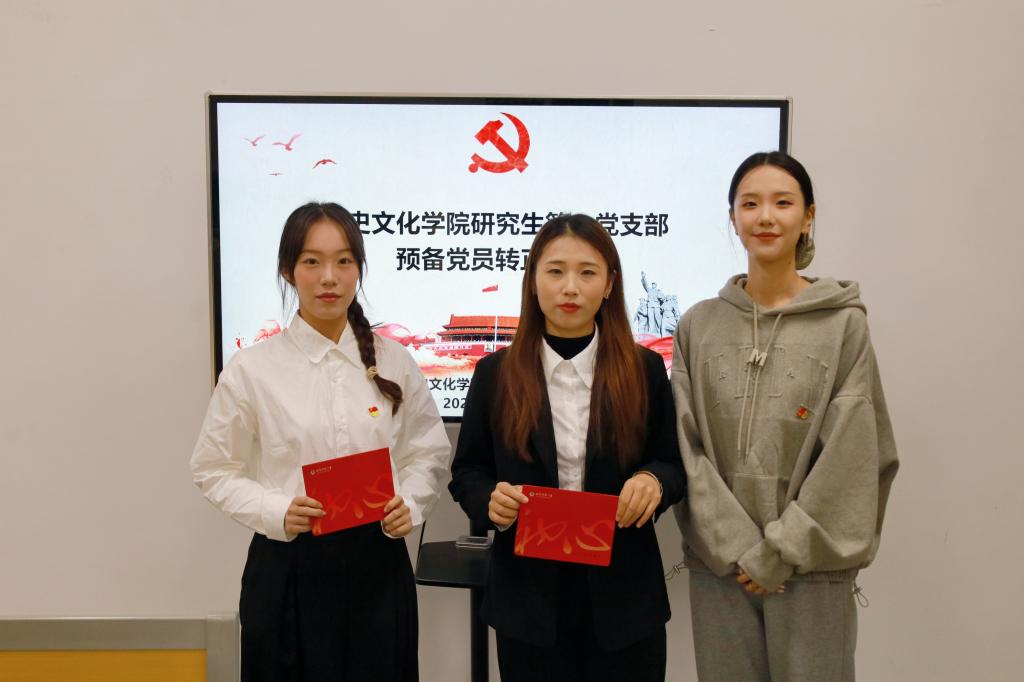 随后,预备党员转正大会在各支部分别进行。参加本次转正大会的预备党员为研究生第一党支部常丽茹同志、李季同志,第二党支部荆好情同志,第三党支部高新同志。孙锋、孔会、徐昊琳分别主持了各自支部的转正大会。会议严格按照学校预备党员转正流程进行,通过了常丽茹等4名同志按期转为中共正式党员事宜。