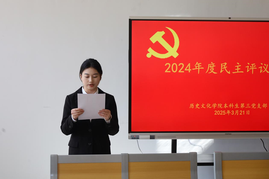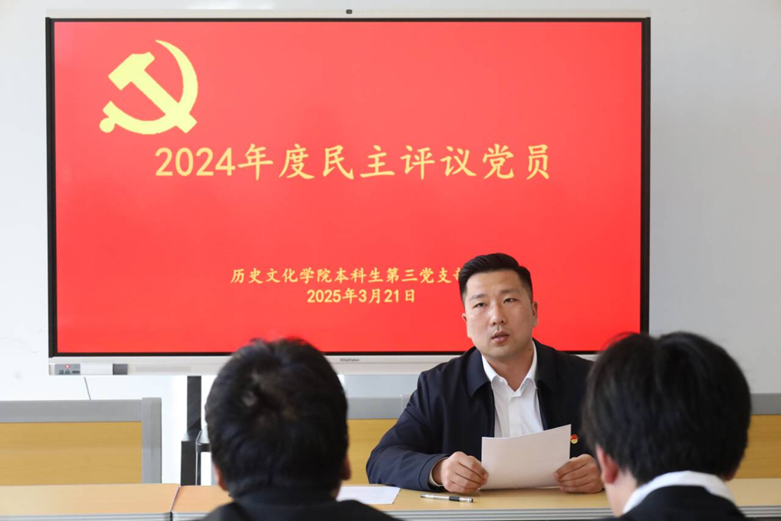 2025年3月21日,大乐透 本科生第三党支部2024年度组织生活会暨民主评议党员大会在孔子书院B106顺利召开。会议由本科生第三党支部书记董经同志主持,支部全体党员同志参加。