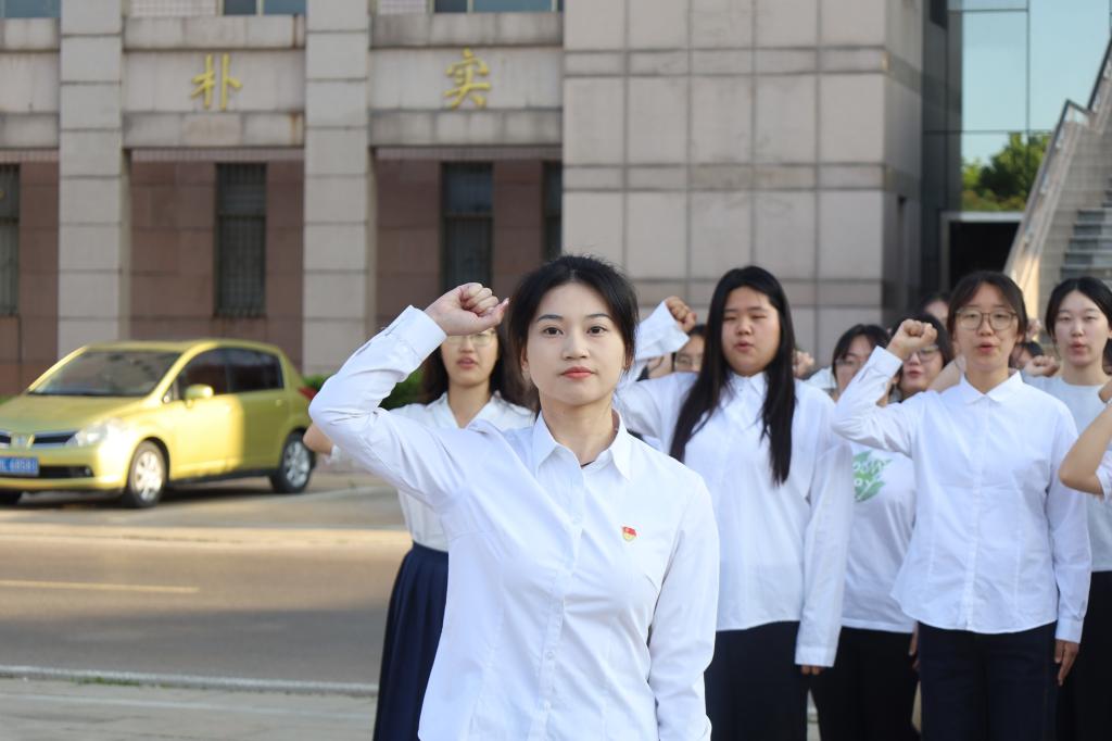 升旗仪式结束后,在本科生第三党支部副书记王彤同志的带领下,全体毕业生党员高举右拳,面向鲜红的党旗,重温入党誓词。“我志愿加入中国共产党……随时准备为党和人民牺牲一切,永不叛党。”党员们面向党旗庄严宣誓,铮铮誓言响彻广场。每一字、每一句,都彰显着共产党员对党忠诚的政治品格,诠释着为共产主义事业不懈奋斗的坚定信念。