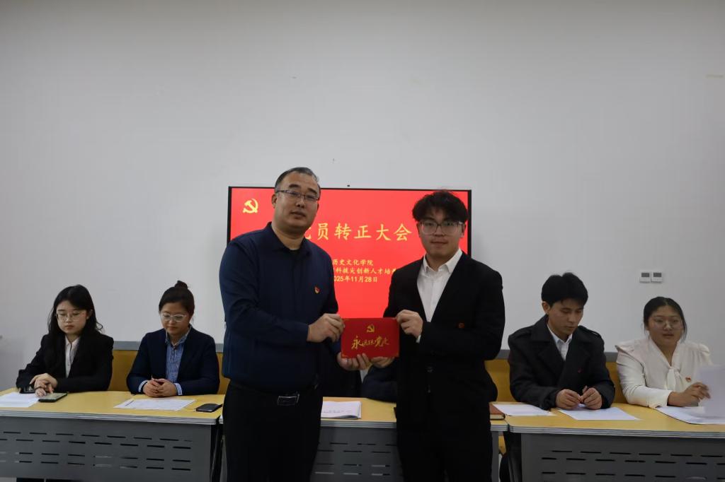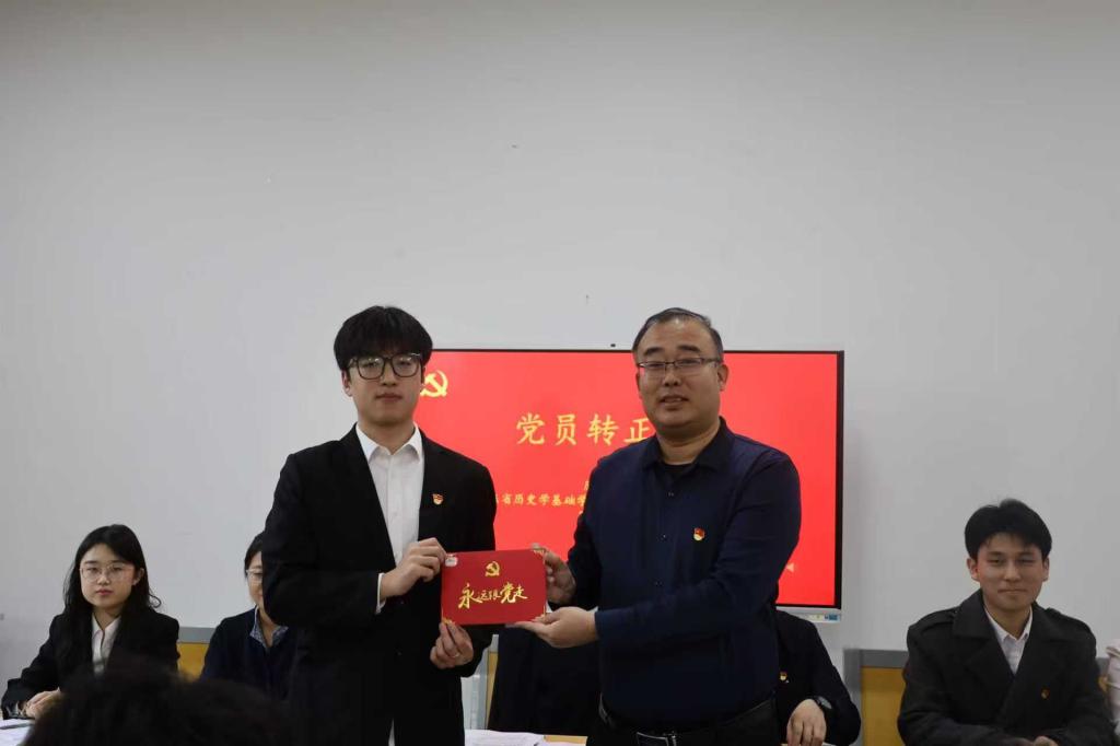 会上,王建阳为6位转正同志颁发了政治生日贺卡,对转正同志们表示祝贺并勉励同志们要坚守入党初心,牢记党员使命,珍惜党员身份,严守党的纪律,继续发扬“优秀是一种习惯”的工作作风,在下一步的学习、工作和生活中充分发挥史院先锋的模范带头作用,为党支部高质量发展贡献力量。