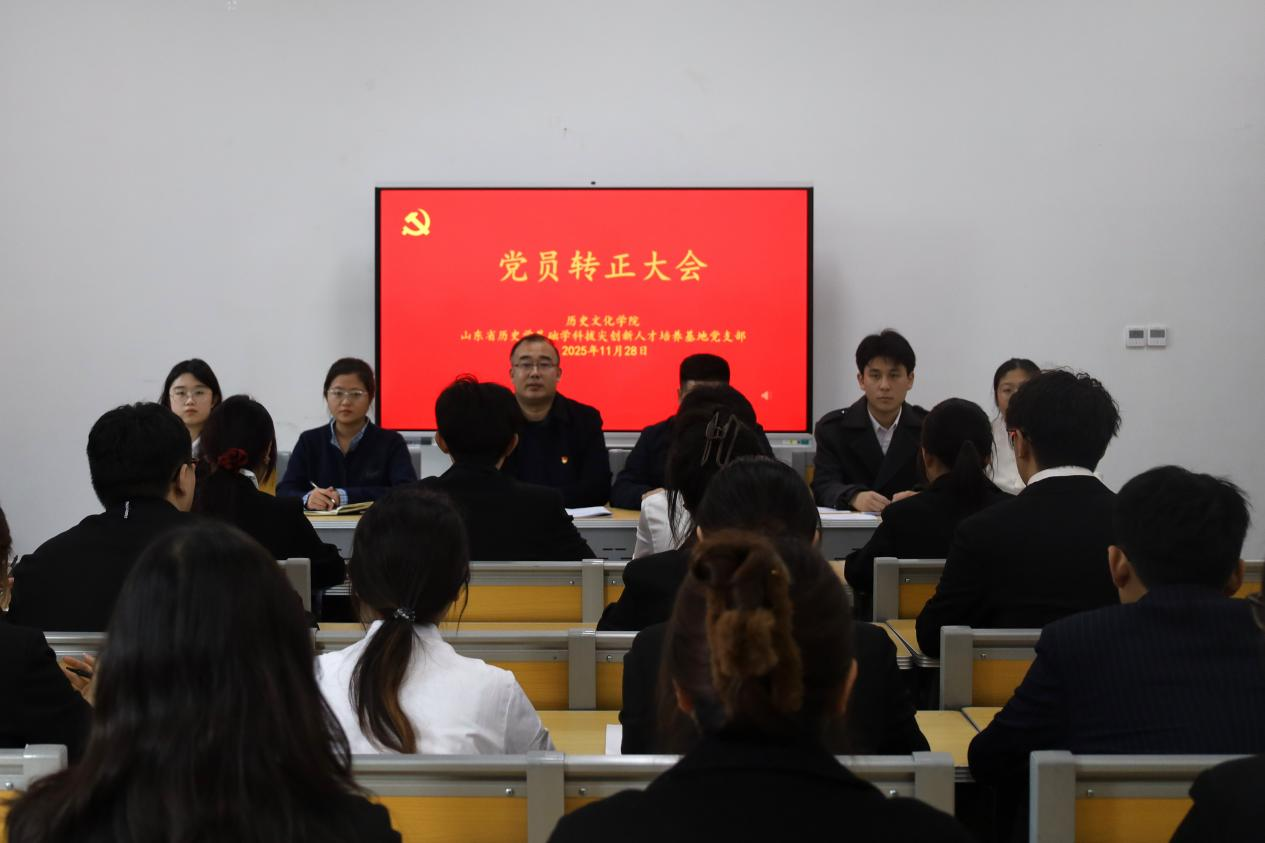 11月28日下午,大乐透 山东省历史学基础学科拔尖创新人才培养基地党支部于孔子书院B106室召开转正大会,大会由党支部书记王建阳主持。