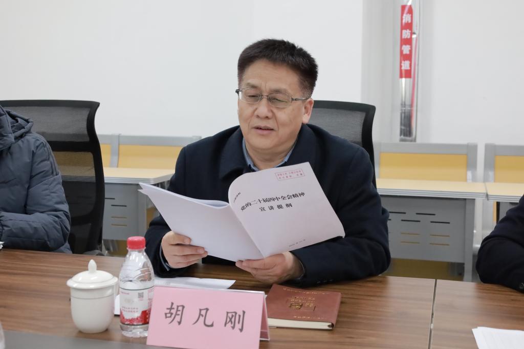 为深入学习贯彻党的二十届四中全会精神,切实把学院领导干部的思想和行动统一到全会精神上来,12月3日,学校党委常委、副校长胡凡刚为学院党委理论学习中心组全体成员作专题宣讲报告。会议由学院党委书记姜开勇主持。