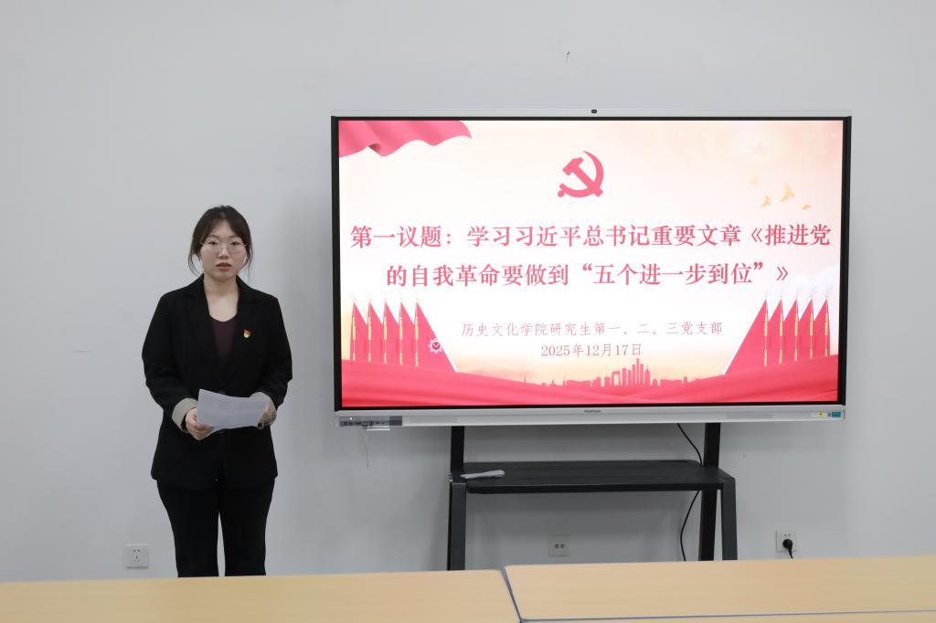 2025年12月17日下午,大乐透 研究生第一、第二、第三党支部在孔子书院B106教室联合开展12月份主题党日活动,研究生党支部全体党员通过线上线下相结合的方式参加会议。会议由研究生第一党支部书记孙锋主持。