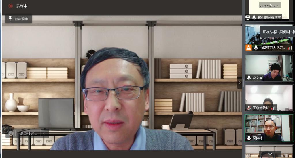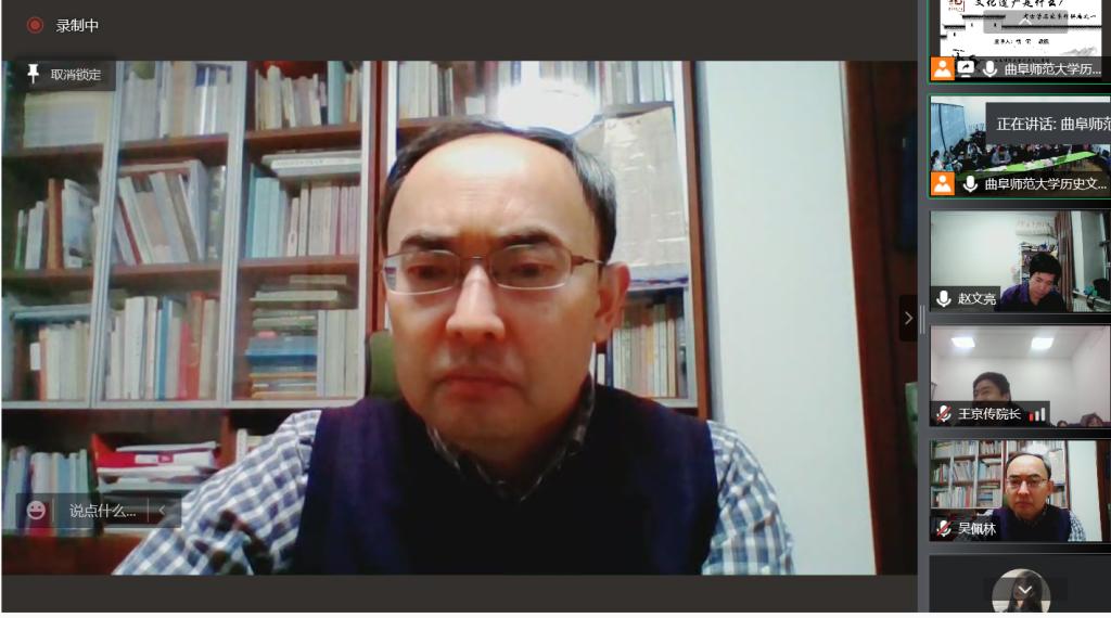 12月26日晚,北京大学考古文博学院教授、云冈研究院院长杭侃教授做客“洙泗讲堂”,通过腾讯会议主讲“考古学名家系列讲座”第一讲 “文化遗产是什么”。报告由王京传副院长主持,吴佩林院长线上参加。会议采取线上、线下两种方式同时进行。
