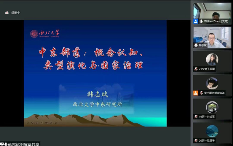 5月14日晚,西北大学中东研究所所长韩志斌教授作客“洙泗讲堂”,通过腾讯会议为大乐透 师生作了题为《中东部落:概念认知、类型演变与社会治理》的学术报告。讲座由赵文亮教授主持,学院相关专业师生及线上来自全国各地的听众共300余人参加了此次活动,会议内容十分精彩。