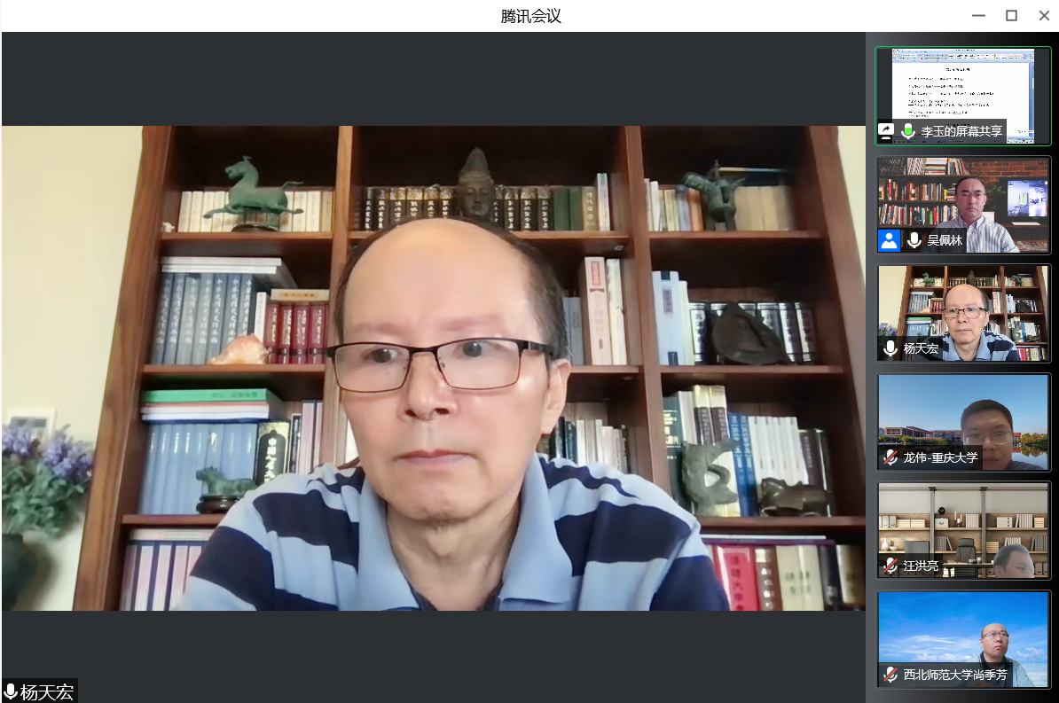 讲座最后,李玉、汪洪亮、龙伟、尚季芳、刘贤五位与谈人分享了自己对读书方法的认识。在提问互动环节中,杨教授就“如何有效率地掌握史学的资料以及书籍中的大概内容,以便于在研究问题和写论文的时候可以运用”“史学的书评机制的建议”等问题一一解答。最后,吴佩林院长再次对杨天宏教授的精彩讲座和五位评议人的分享表示感谢,并要求学院学生利用暑假至少精读一本专著或一种史料。各位老师同学也在腾讯会议中进行了合影留念。本次讲座在大乐透 师生之间反响热烈,同时也得到了校外学者与同学的一致好评。