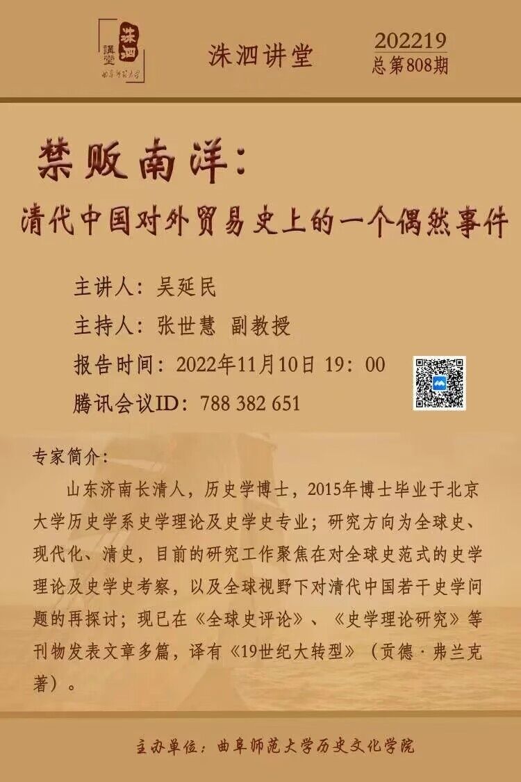 洙泗讲堂预告 | 吴延民:禁贩南洋:清代中国对外贸易史上的一个偶然事件