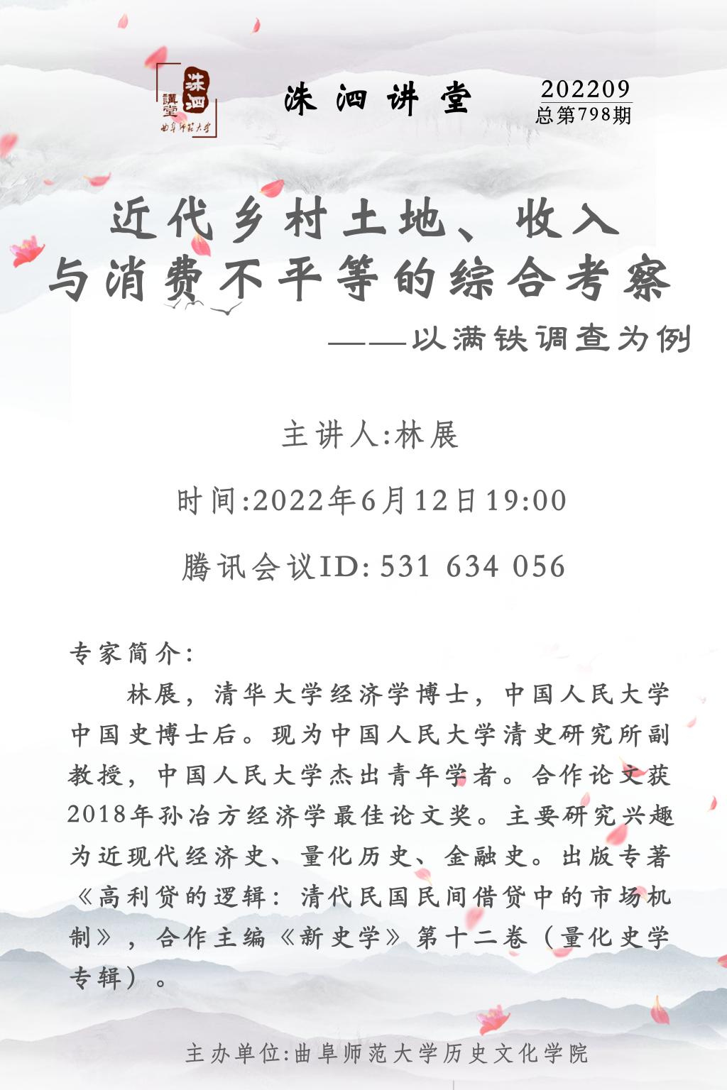 洙泗讲堂预告| 林展:近代乡村土地、收入与消费不平等的综合考察——以满铁调查为例