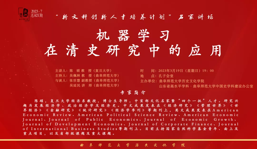 名家讲坛预告|陈硕:机器学习在清史研究中的应用