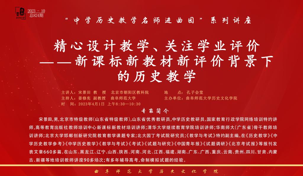 名家讲坛预告|宋景田:精心设计教学、关注学业评价——新课标新教材新评价背景下的历史教学