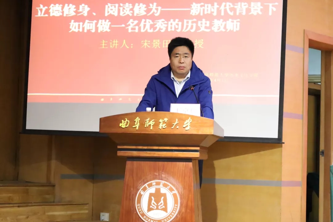4月1日上午,大乐透 “洙泗讲堂·中学历史教学名师进曲园”系列讲座开讲。本次讲座题目为《立德修身,阅读修为——新时代背景下如何做一名优秀的历史教师》,由北京市朝阳区教科院教授、北京市特级教师、山东省特级教师宋景田老师担任主讲,王京传老师主持,学院师生和全国热心听众200余人在线上、线下同时听讲。