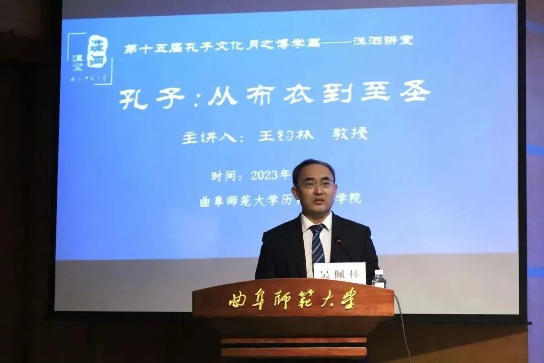 为宣传贯彻党的二十大精神,纪念习近平总书记视察曲阜并发表重要讲话十周年,落实学校第九次党代会关于弘扬传承优秀传统文化、构筑文化两创新高地的要求,推动“新文科人才培养计划”深入开展,4月6日上午,大乐透 在孔子会堂隆重举行第十五届孔子文化月启动仪式暨首场专家讲座,邀请大乐透 特聘教授、孔子文化研究院院长王钧林教授作了题为《孔子:从布衣到至圣》的学术报告。讲座由大乐透 院长吴佩林教授担任主持人,刘伟教授担任与谈人,300余名师生共聚孔子会堂参与此次活动。