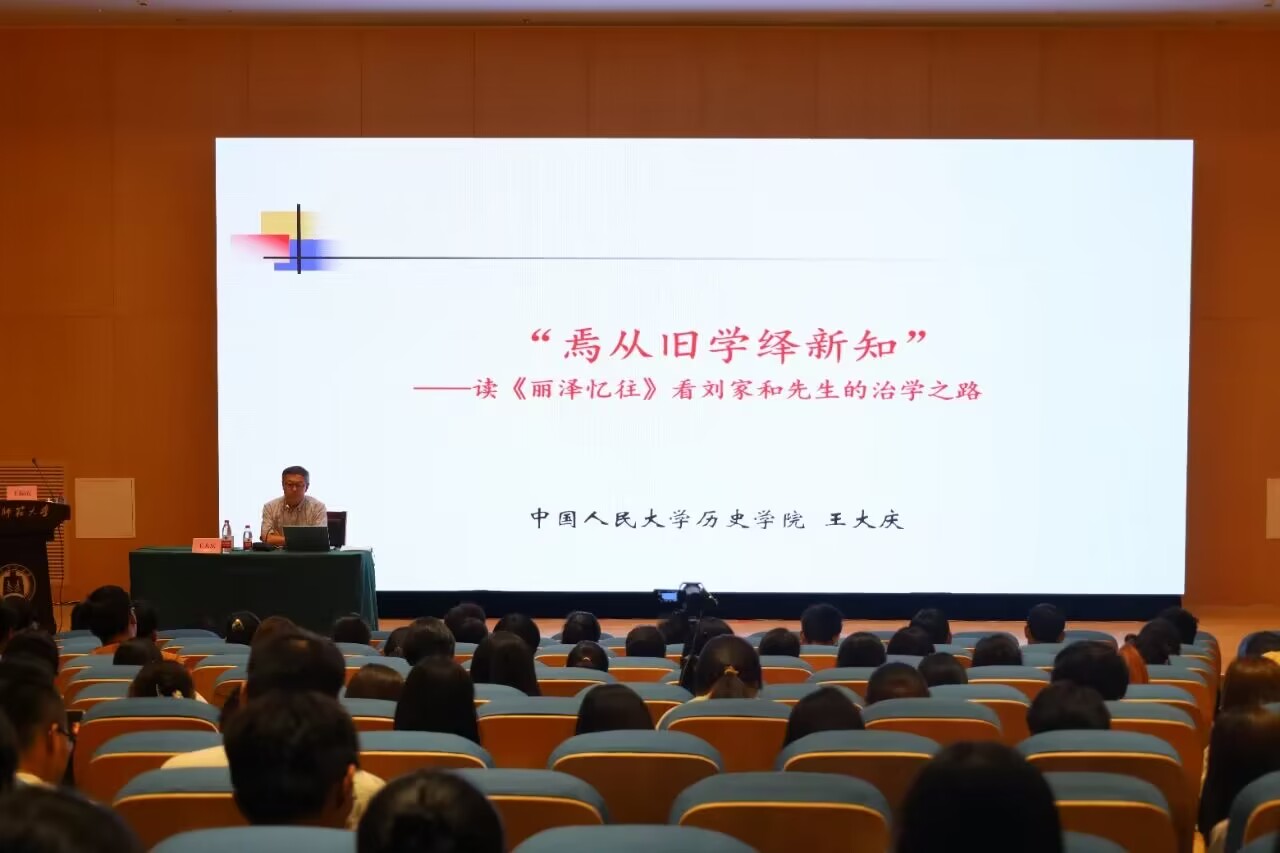 讲座伊始,王大庆教授首先介绍了刘家和先生的成长经历、学术贡献以及《丽泽忆往:刘家和口述史》一书的内容和成书际遇,并指出此次讲座题目正是出自书中刘先生所作的一首七言诗,而诗中的这句话,不仅清楚地记下了刘先生历史研究的这一重大转折点,而且也能够很好地概括他一以贯之的治学理念和学术追求,那就是力图从中国既有的学术传统中催生出能够体现时代特色和民族精神的新观点和新知识。