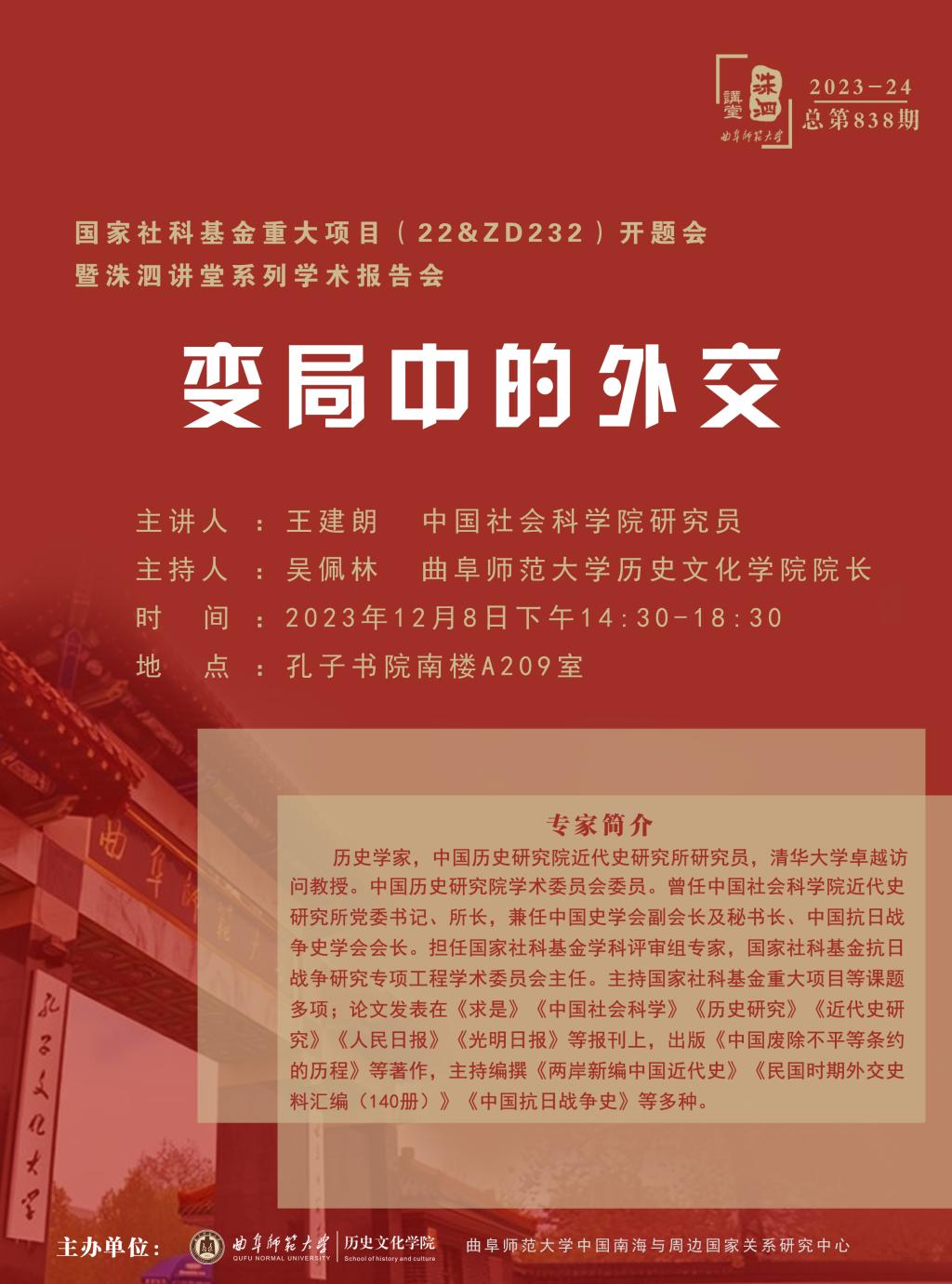 国家社科基金重大项目开题会暨洙泗讲堂系列学术报告会议程