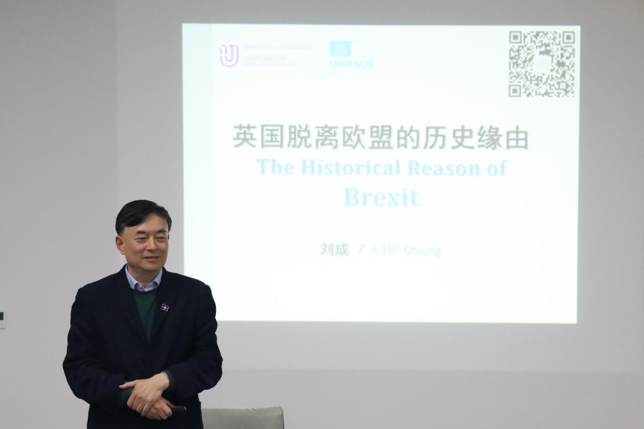 联合国教科文组织和平学教席主持人、国际和平研究协会理事、江苏省世界史学会会长、南京大学历史学院教授刘成作学术报告