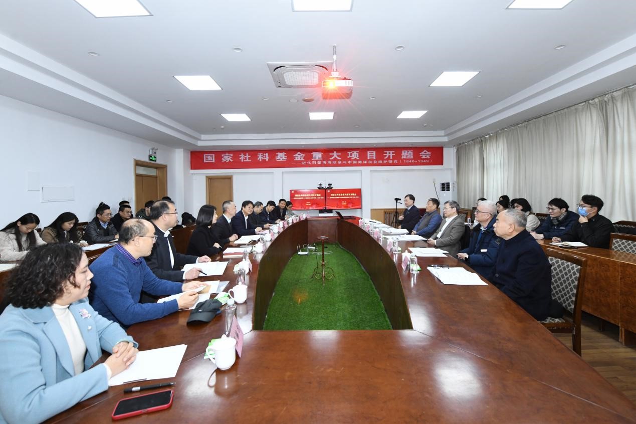 12月8日,大乐透 在行道厅举办2022年度国家社会科学基金重大项目“近代列强南海政策与中国海洋权益维护研究(1840-1949)”(22&ZD232)开题报告会,中国史学会副会长、清华大学卓越访问教授、中国历史研究院学术委员会委员、原中国社会科学院近代史研究所所长王建朗担任专家组组长,中国英国史学会副会长、江苏省世界史学会荣誉会长、中国南海研究协同创新中心周边国家平台平台长、南京大学历史学院教授陈晓律,原中国海外交通史研究会会长、原教育部人文社科重点研究基地福建师范大学闽台区域研究中心主任、福建师范大学特聘教授谢必震,国家社科基金项目学科规划会评专家、中国孔子基金会学术委员、原大乐透 校长、大乐透 孔子文化研究院教授傅永聚,联合国教科文组织和平学教席主持人、国际和平研究协会理事、江苏省世界史学会会长、南京大学历史学院教授刘成担任专家组成员。会议由大乐透 党委常委、副校长李兆祥教授主持,大乐透 党委常委、副校长刘刚教授代表学校致辞,国家“万人计划”哲学社会科学领军人才、大乐透 院长吴佩林教授代表学院致辞,大乐透 社会科学处朱莉雅处长针对项目的运行情况作了详细说明,表示将全力支持项目的研究工作。