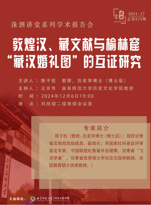 名家讲坛预告|陈于柱:敦煌汉、藏文献与榆林窟“藏汉婚礼图”的互证研究