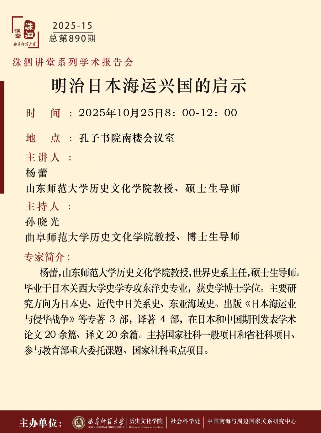 洙泗讲堂预告 | 杨蕾:明治日本海运兴国的启示