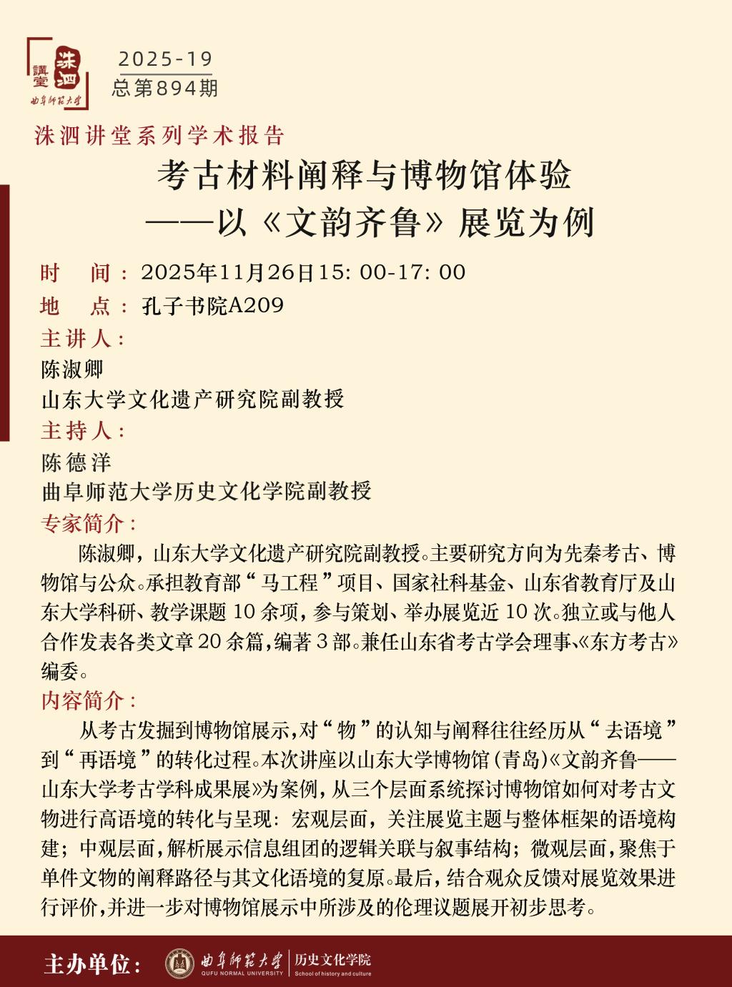 洙泗讲堂之陈淑卿:考古材料阐释与博物馆体验 ——以<...