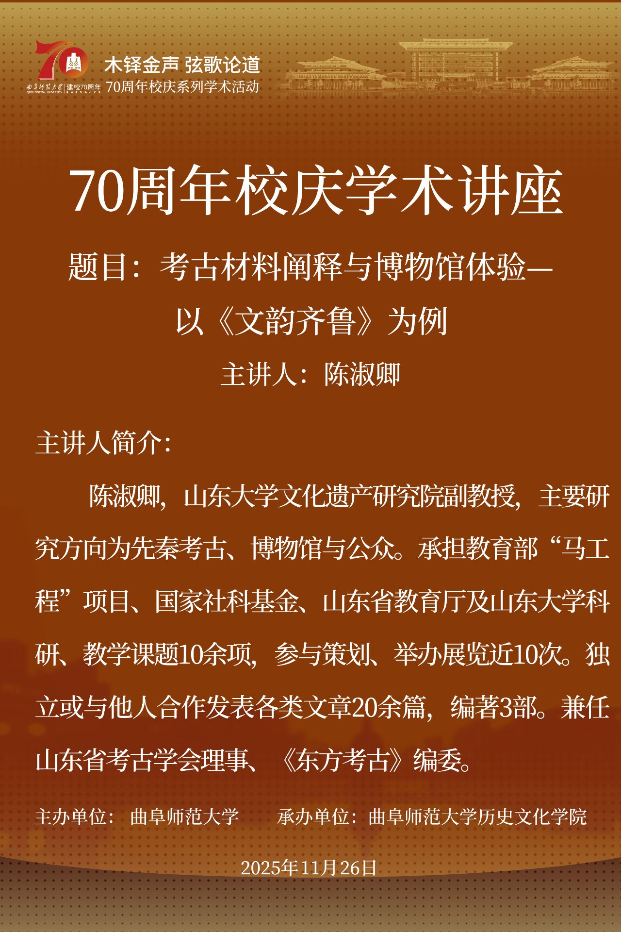 洙泗讲堂预告|陈淑卿:考古材料阐释与博物馆体验-以《文韵齐鲁》为例