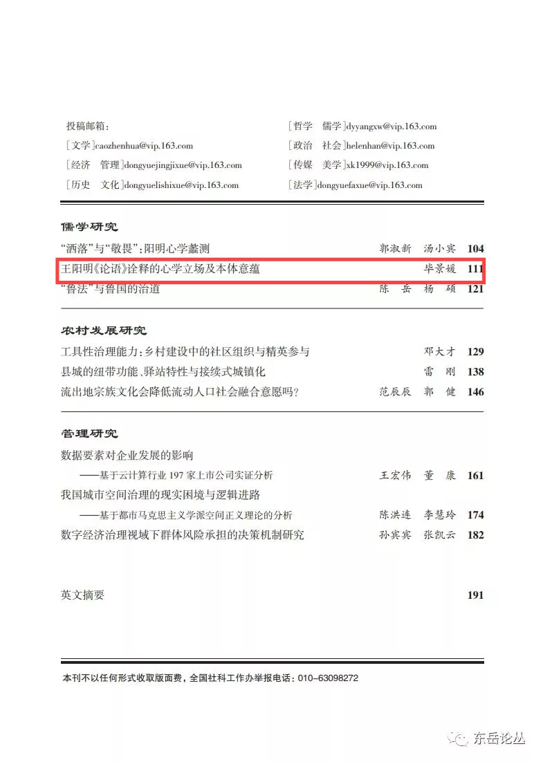 大乐透 毕景媛副教授在《东岳论丛》(CSSCI来源期刊)发表《王阳明〈论语〉诠释的心学立场及本体意蕴》一文。